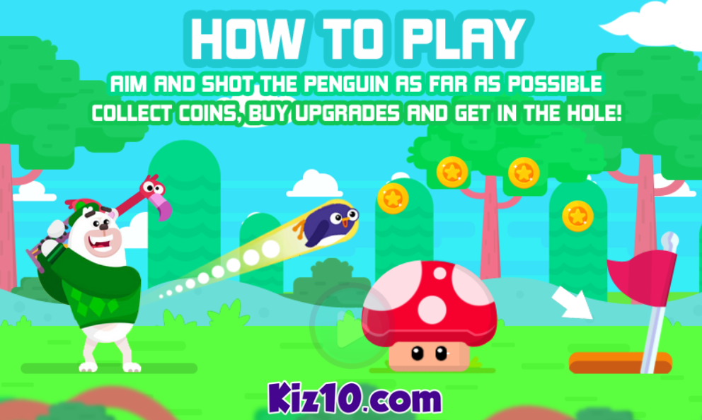 Golf Bounce is a fun online game where you’ll be launching a penguin as far as possible. It’s a continuation of a similar game, called Penguin bounce, where you had the same objective. In today’s game, you will be trying to guess the correct angle and the correct strength to launch your penguin at in order to fly off as far as possible while also collecting coins. These coins can then be used to buy numerous upgrades, be it extra speed, extra strength or a better launching system. Be sure to avoid all of the obstacles present on the map that can stop you in flight. You can also play the game on your phone, so come on, let’s play!
