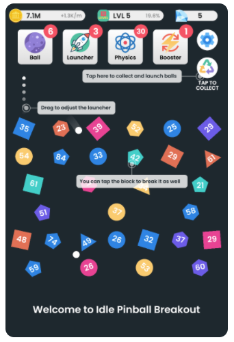 Idle Pinball Breakout is a clicker-idle game that uniquely mixes pinball arcade physics, brick breaker gameplay, and idle offline earning.