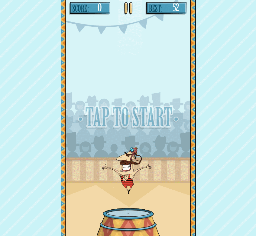 Help the brave circus acrobat reach new heights in this addictive pinball-style skill game. Use cannons and ropes to jump higher and higher and be careful to avoid obstacles and the bears on a bicycl...