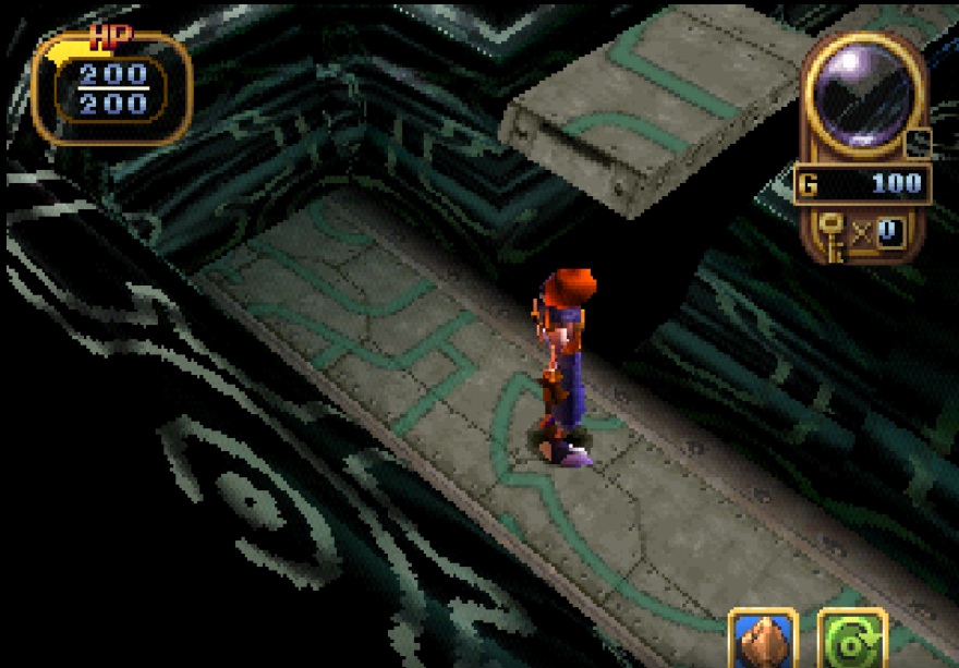 The player controls Flint, a young swordsman and silent protagonist. Flint uses a sword to fight enemies and he carries a shield which gives passive damage reduction; stronger versions of both are obtainable throughout the game. Flint can also learn additional successive strikes for his sword, known as combos, by collecting items called Puzzle Pieces and exchanging them with the character Lord Jeehan. The game also features unique magical ring items which grant Flint special powers such as the abilities to float in place or traverse over harmful lava.