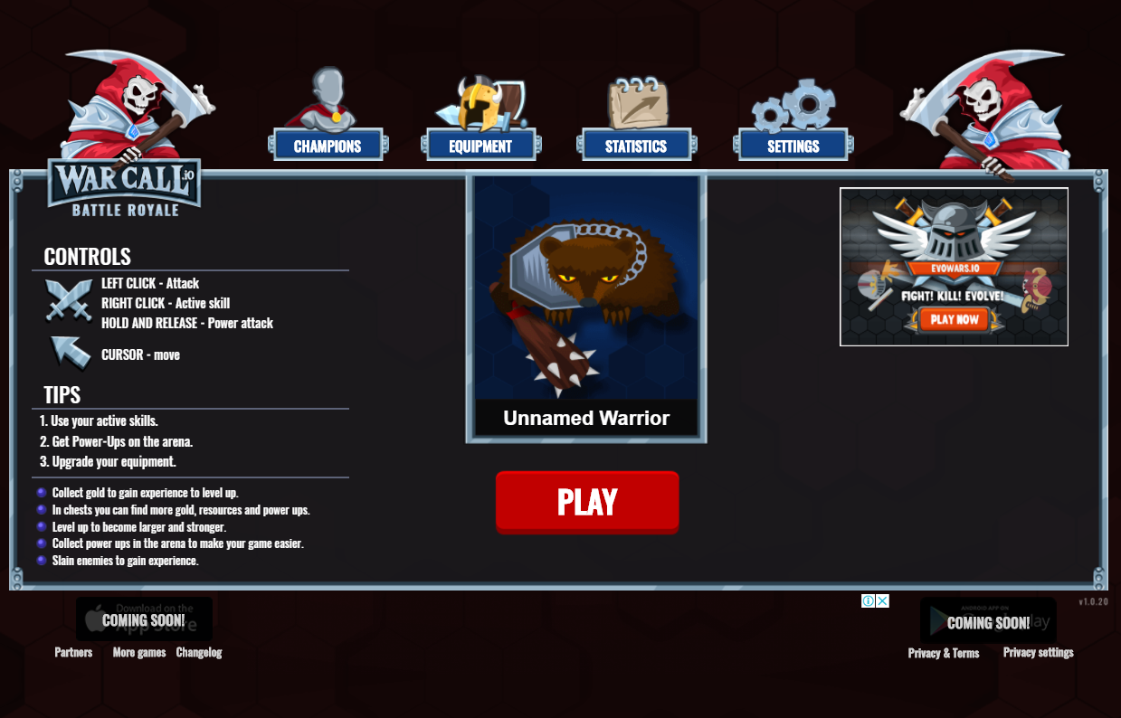 WarCall.io is an action online game where you find yourself in an arena full of enemies. The main mode here is battle royale, so you only win if you stay alive last. In addition, try to take coins for which you can improve your character in the menu or buy a new one. It is also possible to upgrade your armor or weapons. But you will need diamonds for that, so try to get them as much as possible. The only downside to the game is that it doesn't include multiplayer, so you can't play with friends.