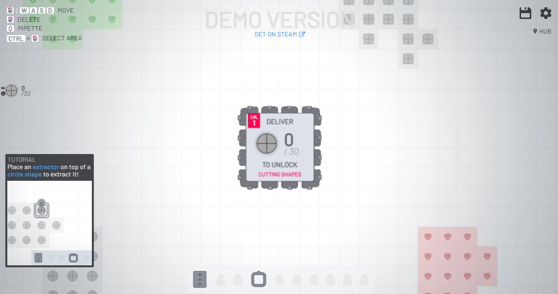 Since the demand raises you will have to scale up your factory to fit the needs - Don't forget about resources though, you will have to expand in the infinite map! Since shapes can get boring soon you need to mix colors and paint your shapes with it. Combine red, green, and blue color resources to produce different colors and paint shapes with it to satisfy the demand.
