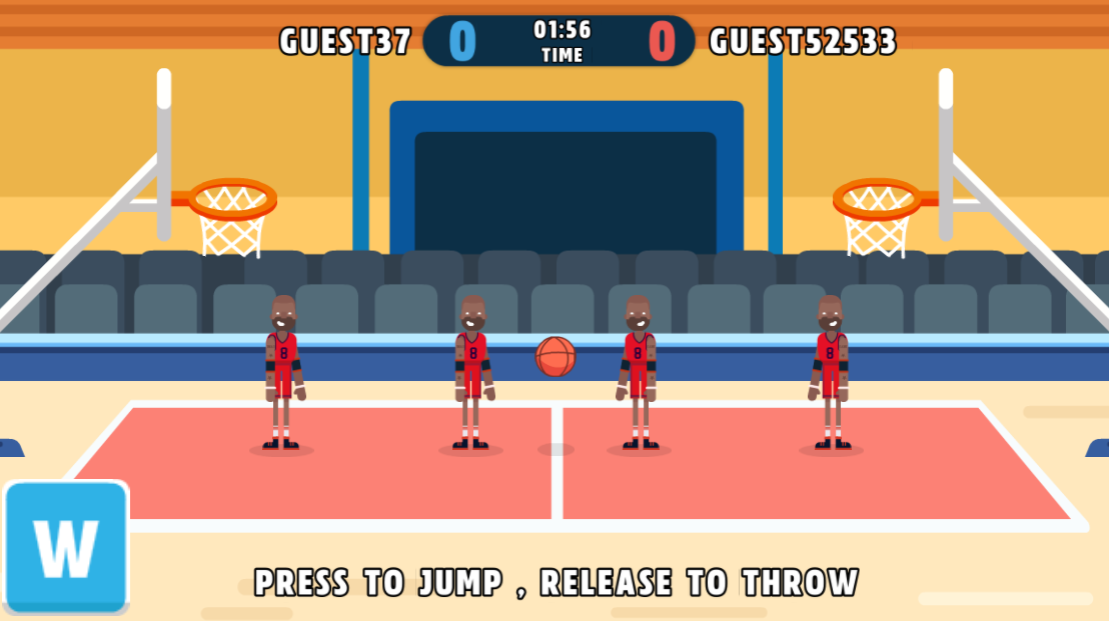 Jump Basket is a sports game that offers you really simple gameplay. You will simply be jumping around with your players. Based on his posture and the direction he's facing, the player will jump on your command. You can thus move forwards and backwards. If the player has the ball, you simply jump and then let go of the key that you use for jumping. At the beginning the controls might seem rather hard, but you’ll get used to them with time. The game also offers a one PC multiplayer mode. If you don’t have anyone to play with, you can use the classic multiplayer. So come on, let’s play!