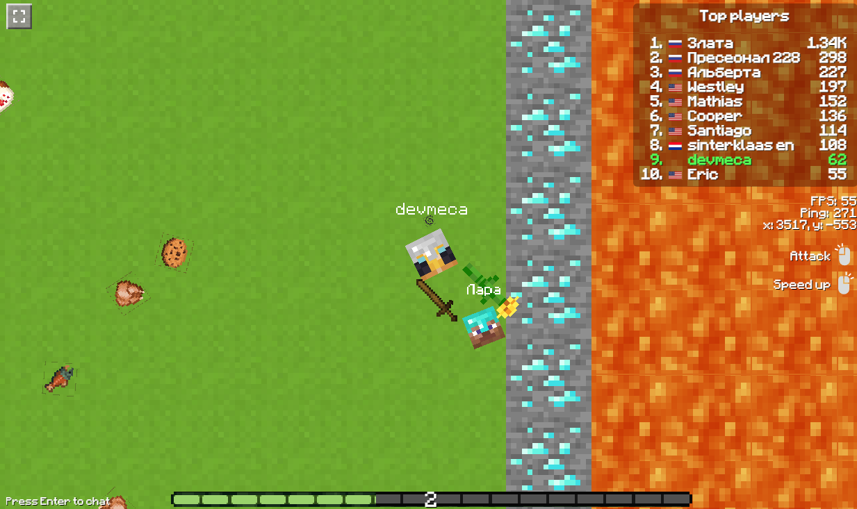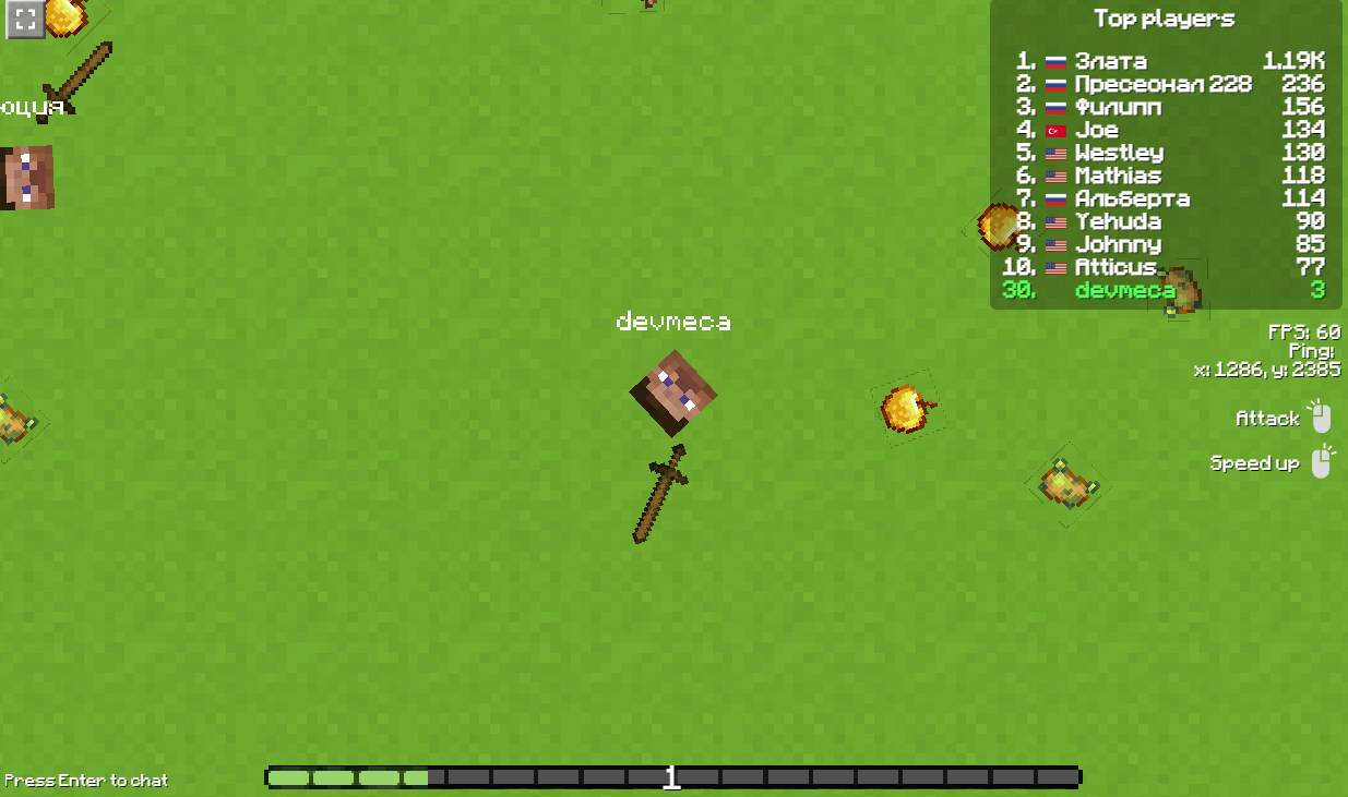 MineStrike.fun is a simple game in an older .io theme where you’ll be fighting with your opponents in an arena. You will be equipped with a sword and your goal will be to get rid of other players. The more characters you kill, the larger you can grow and the harder it will be to kill you. You can also use the fruits that you can find on the ground to grow larger. Try to get as high up the scoreboard as possible and become king of the arena. You can also play the game on your mobile phone, so get to it!