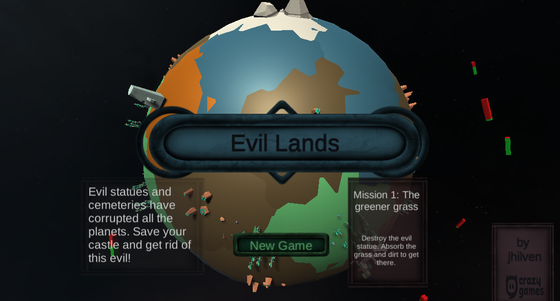 Evil Lands is an action game to get rid of the evil buildings by absorbing nearby lands strategically. Evil statues and cemeteries have corrupted all the planets. Save your castle and get rid of this evil!